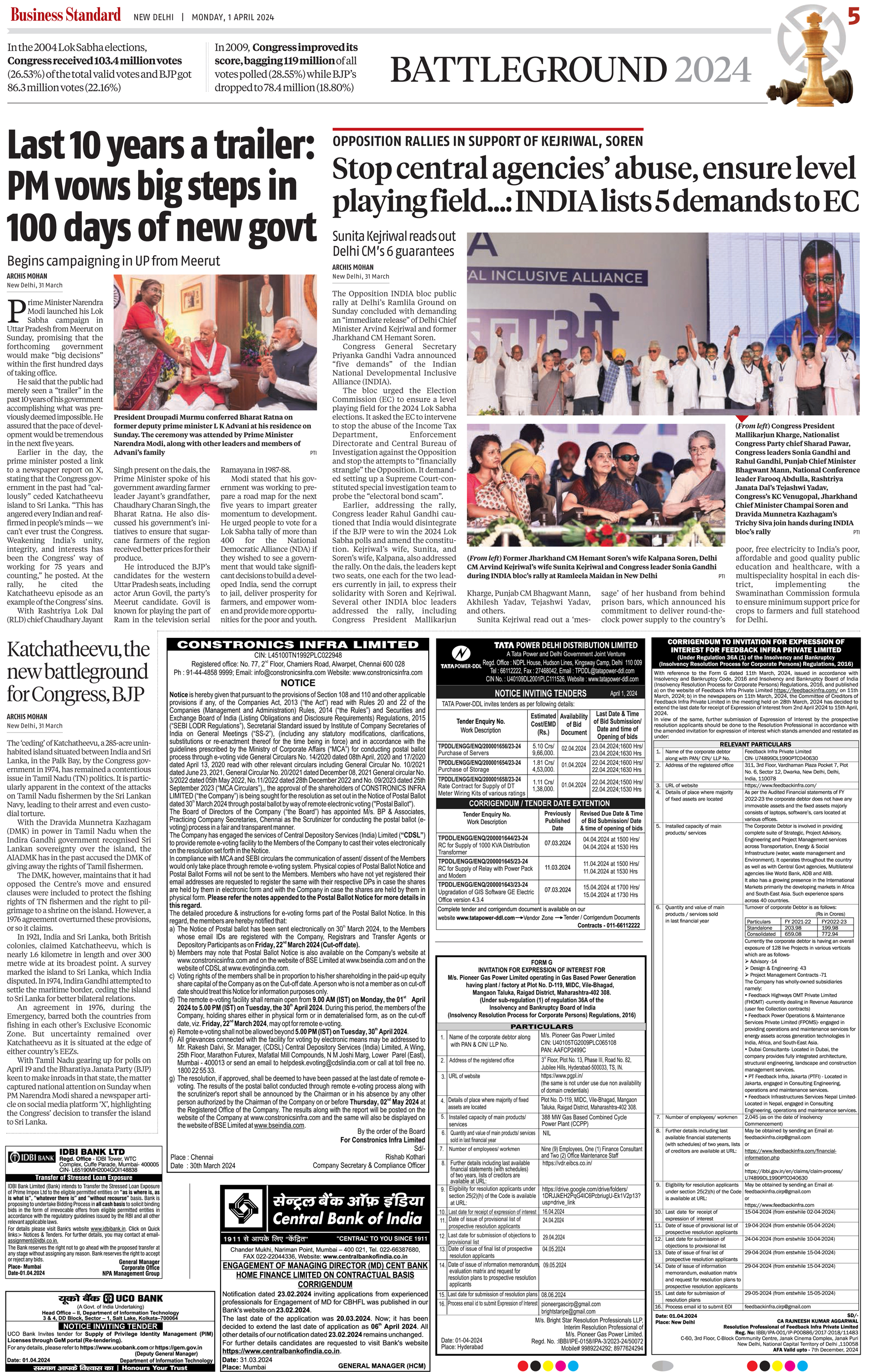 | Tender Notice Ad in Rajasthan Patrika Kolkata Edition | Tender Notice Ad in Rajasthan Patrika New Delhi Edition |