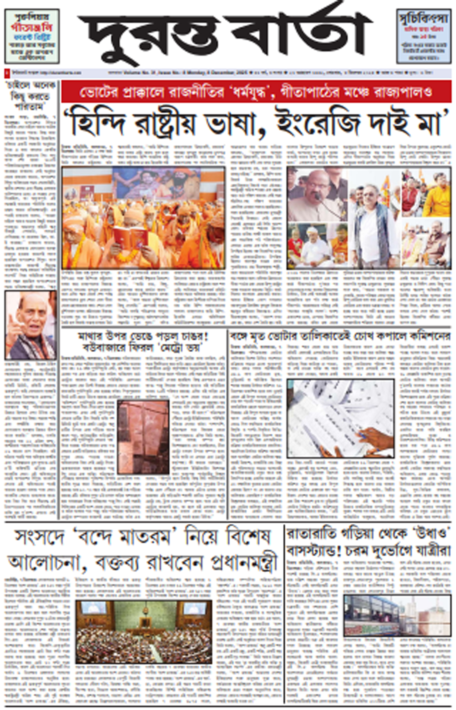 Duranta Barta (Bengali Daily) is a regional Bengali-language newspaper published in West Bengal, dedicated to delivering timely and relevant news to its readers. The newspaper covers a wide range of topics including local and state news, politics, social issues, education, business, culture, and community affairs. With its strong regional focus, Duranta Barta keeps readers informed about developments that directly impact their daily lives, making it a trusted source of information for Bengali-speaking audiences.