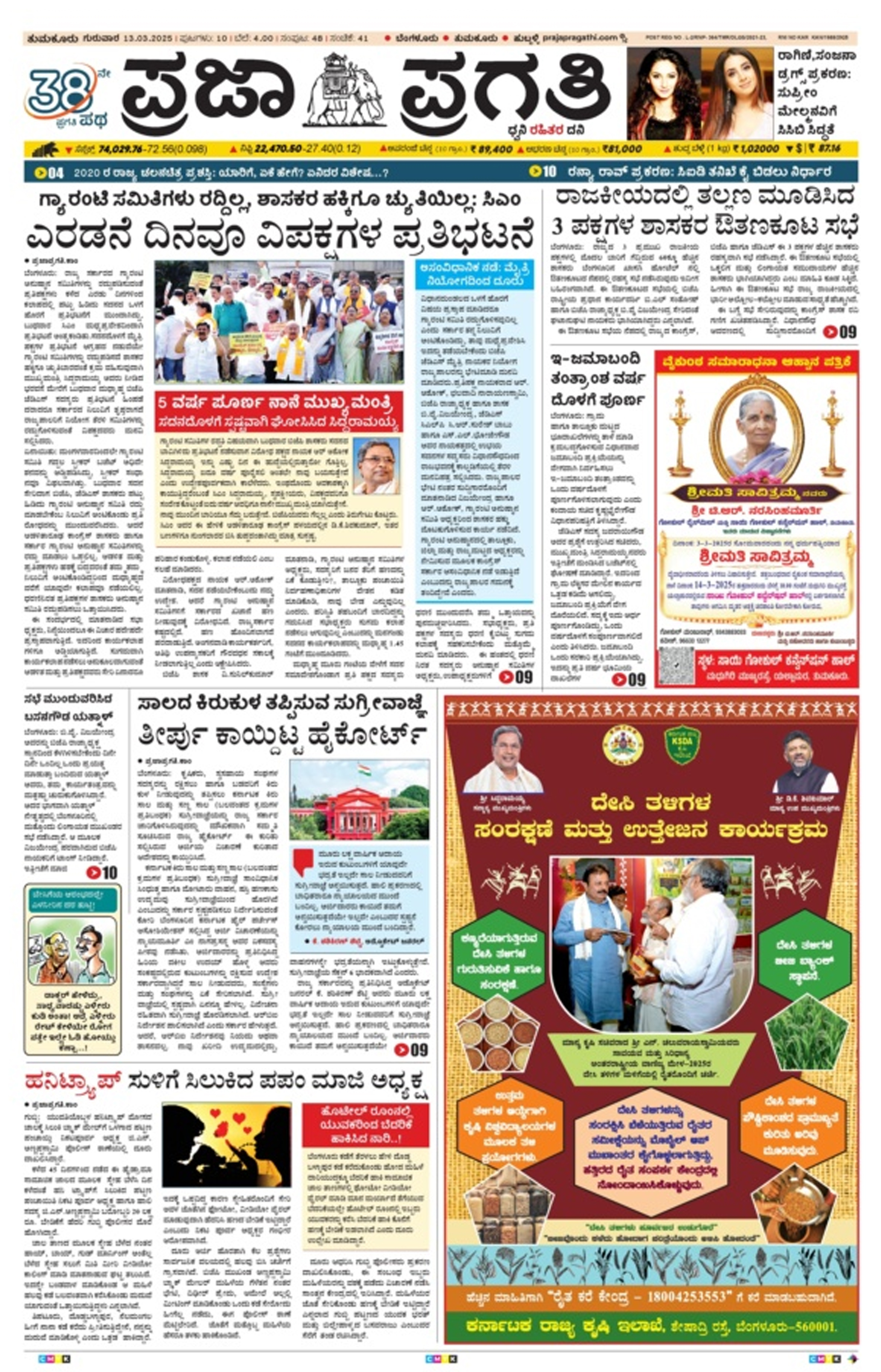 | Praja Pragathi Tumkur Edition | Praja Pragathi Bangalore Edition |