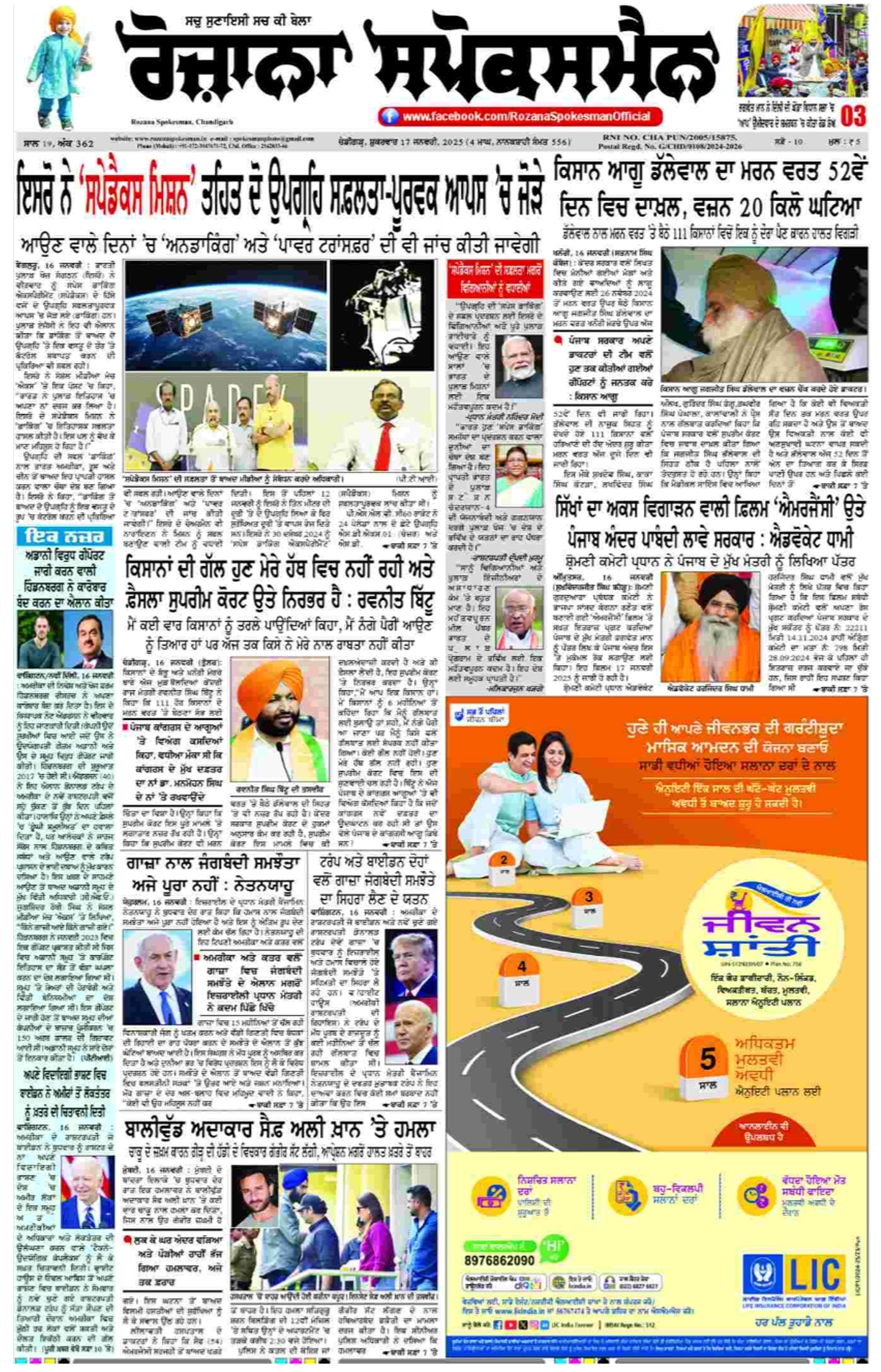 Rozana Spokesman is a leading Punjabi-language daily newspaper that has earned a reputation for delivering accurate, unbiased, and impactful journalism. Founded with a mission to uphold truth and transparency, it caters to the Punjabi-speaking audience in Punjab and other regions where Punjabi communities thrive. The newspaper covers a wide range of topics, including politics, business, culture, entertainment, and social issues, ensuring comprehensive news coverage for its diverse readership. With its commitment to ethical reporting, Rozana Spokesman has become a trusted source of information for its loyal readers.