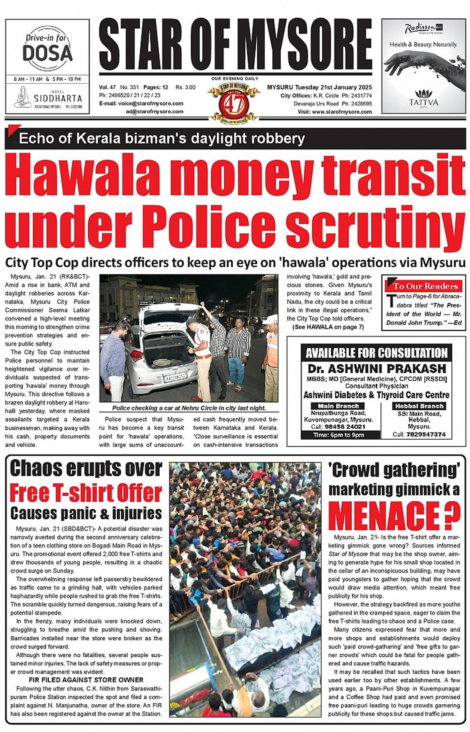 Star of Mysore is a widely recognized and trusted newspaper in Karnataka, especially popular in Mysuru and surrounding regions. With its strong readership base and engaging content, it provides an excellent platform for businesses, individuals, and organizations to reach a local audience. Whether you’re promoting a product, service, or event, Star of Mysore ensures high visibility and targeted reach. Its bilingual publication in English and Kannada further enhances its accessibility to diverse demographics, making it ideal for advertisements like property listings, recruitment, public notices, and more.