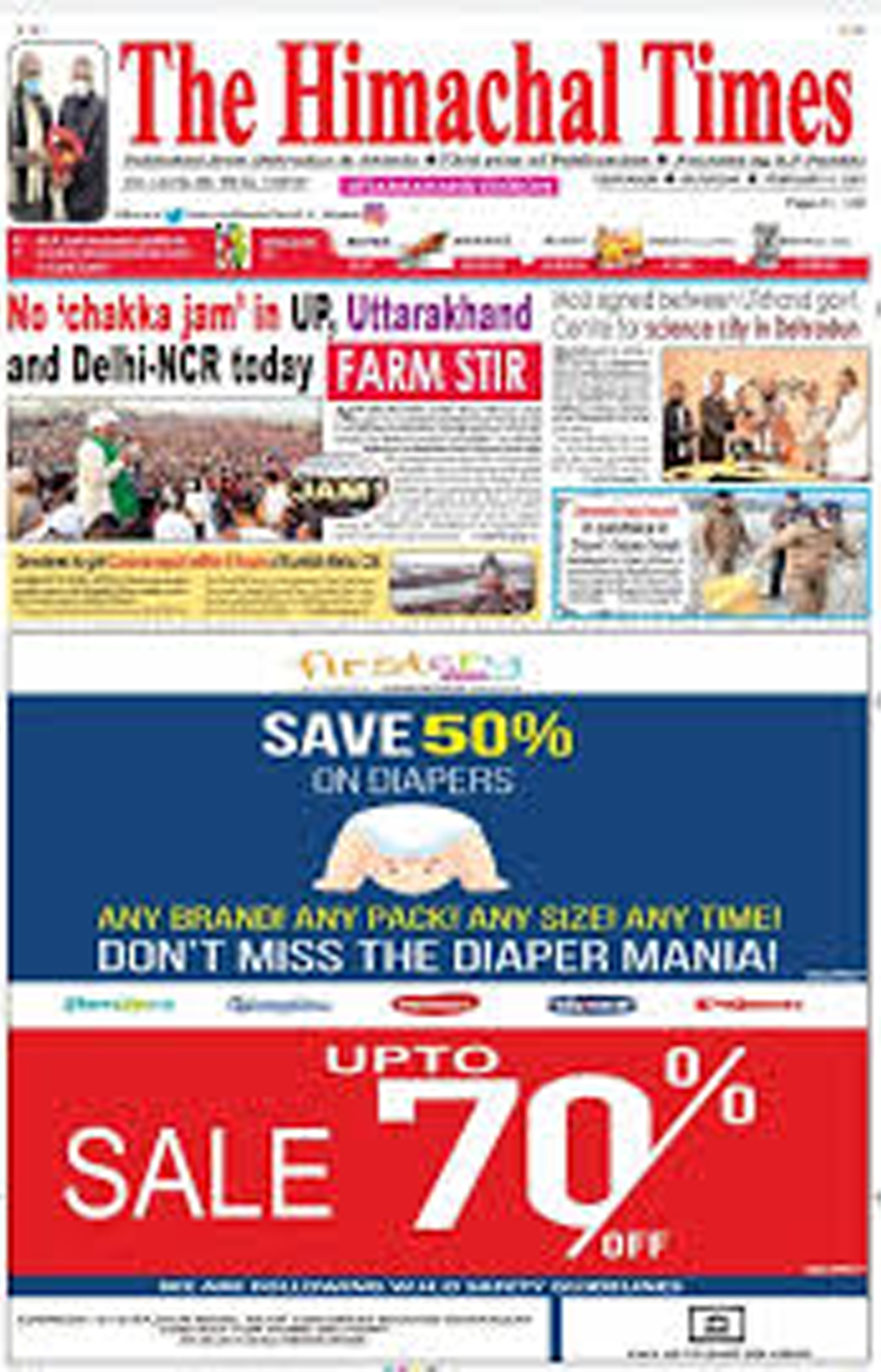 The Himachal Times is a well-established newspaper that serves as a key source of news and information for readers in Himachal Pradesh and nearby regions. Known for its credible journalism, the newspaper covers a wide range of topics, including politics, business, local events, cultural affairs, and social issues. With a strong regional focus, it provides in-depth reporting on matters that directly impact the people of Himachal Pradesh, making it a trusted publication among professionals, business owners, and general readers.