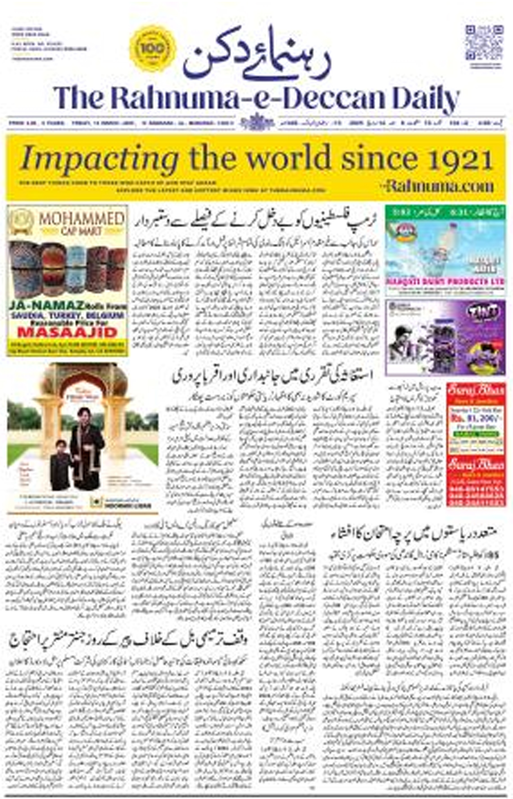 In addition to its strong editorial presence, The Rahnuma-E-Deccan Daily offers cost-effective advertising options, including display ads, classifieds, and public notices. Its extensive reach within the Urdu-speaking population allows businesses to connect with potential customers in a meaningful way, enhancing brand visibility and credibility. With its widespread distribution and reputation for quality journalism, advertising in The Rahnuma-E-Deccan Daily is a strategic choice for those looking to maximize their outreach and impact.