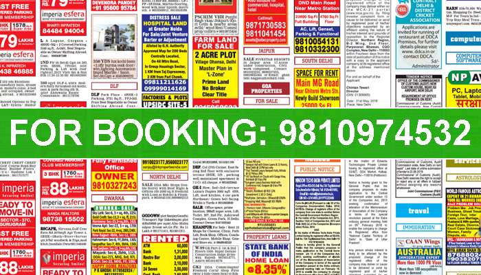 If you're looking to publish your advertisement and want to get the best ad rates, you can reach out to us at 9810974532 or email us at info@getmeup.in. We are committed to providing you with the best possible discounted rates, as we always strive to assist our customers in getting the best rates and service to our clients.