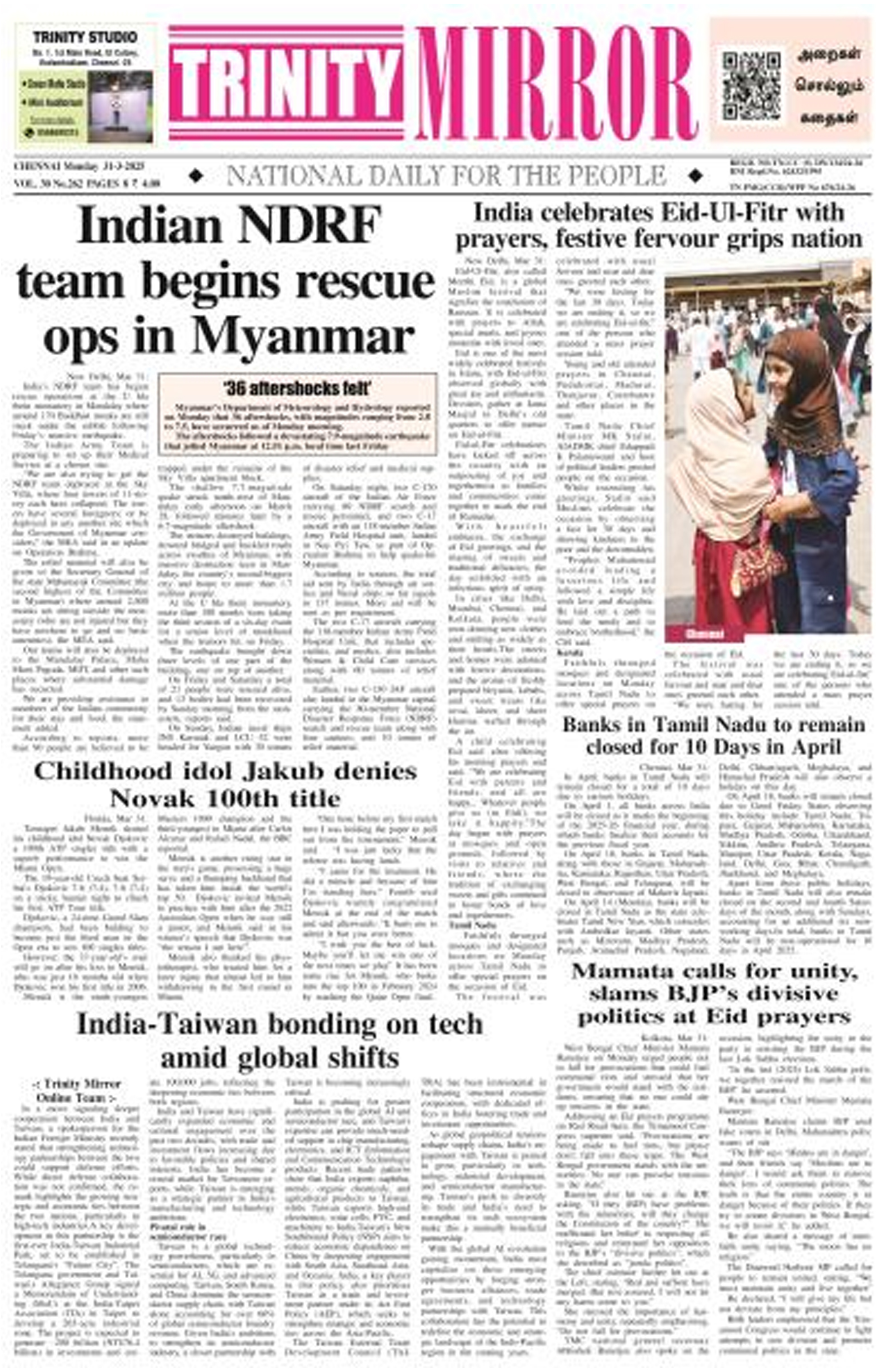 | Trinity Mirror Chennai Edition | Trinity Mirror Madurai Edition |